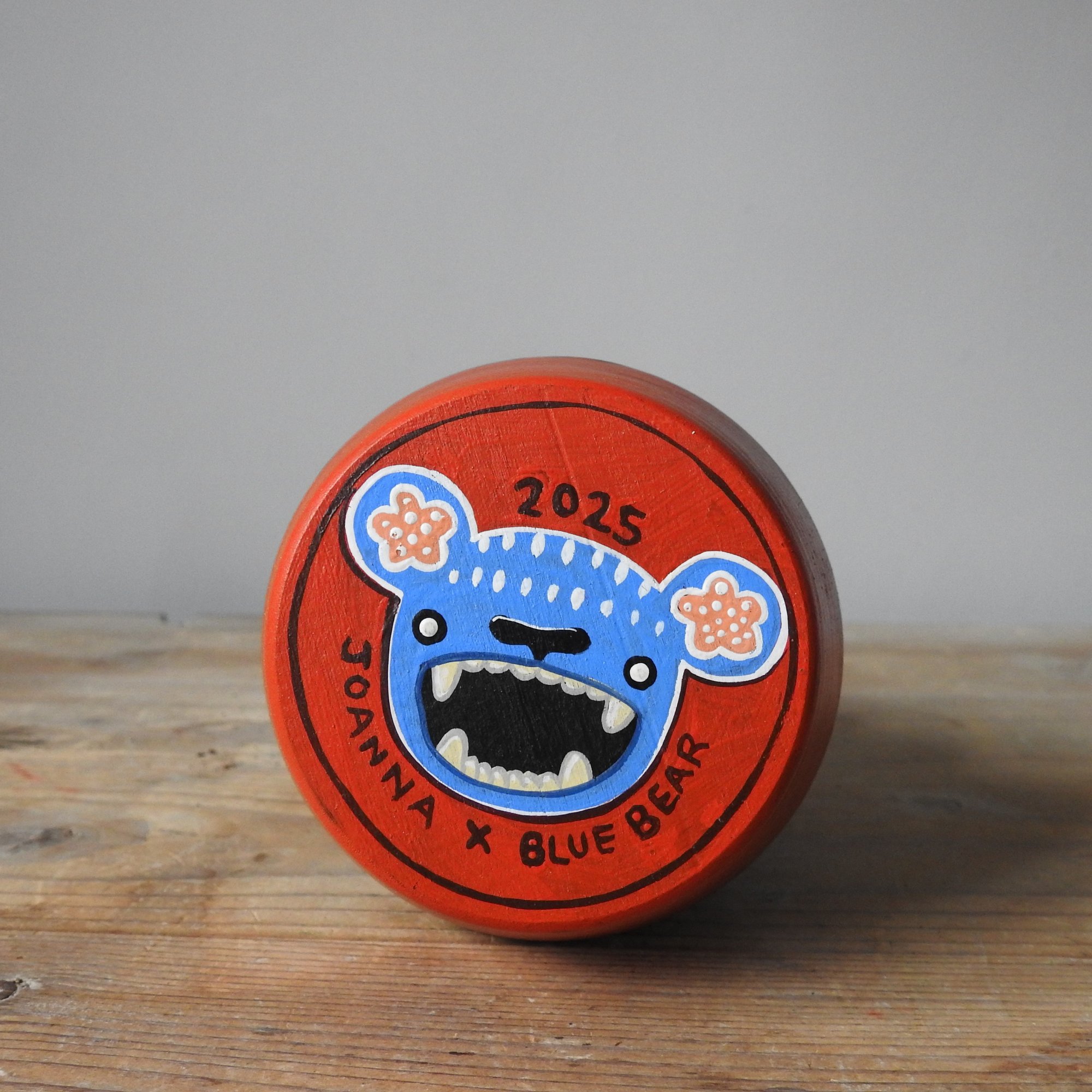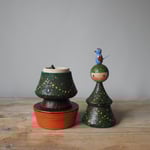 Turned wooden piece, hand painted, then sealed with a clear matt acrylic top coat.