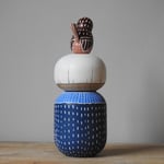 My wooden girls are turned by a production turner to my designs and then hand painted in the U.K. by me, a British artist, exploring patterns and scenes encountered by me on my travels and in daily life.