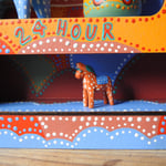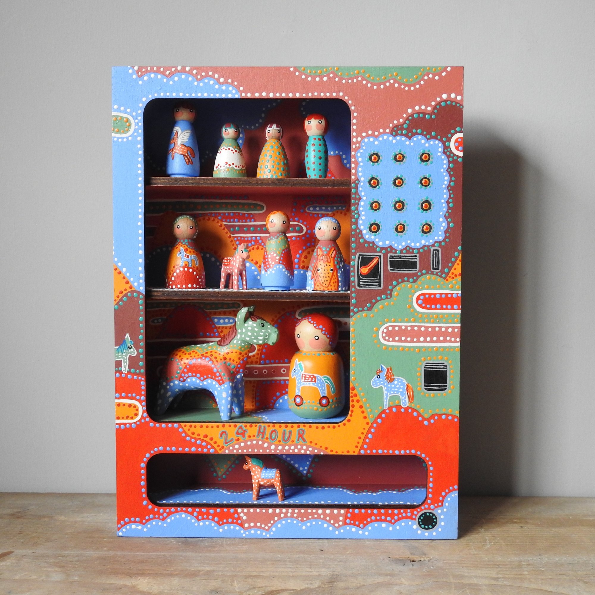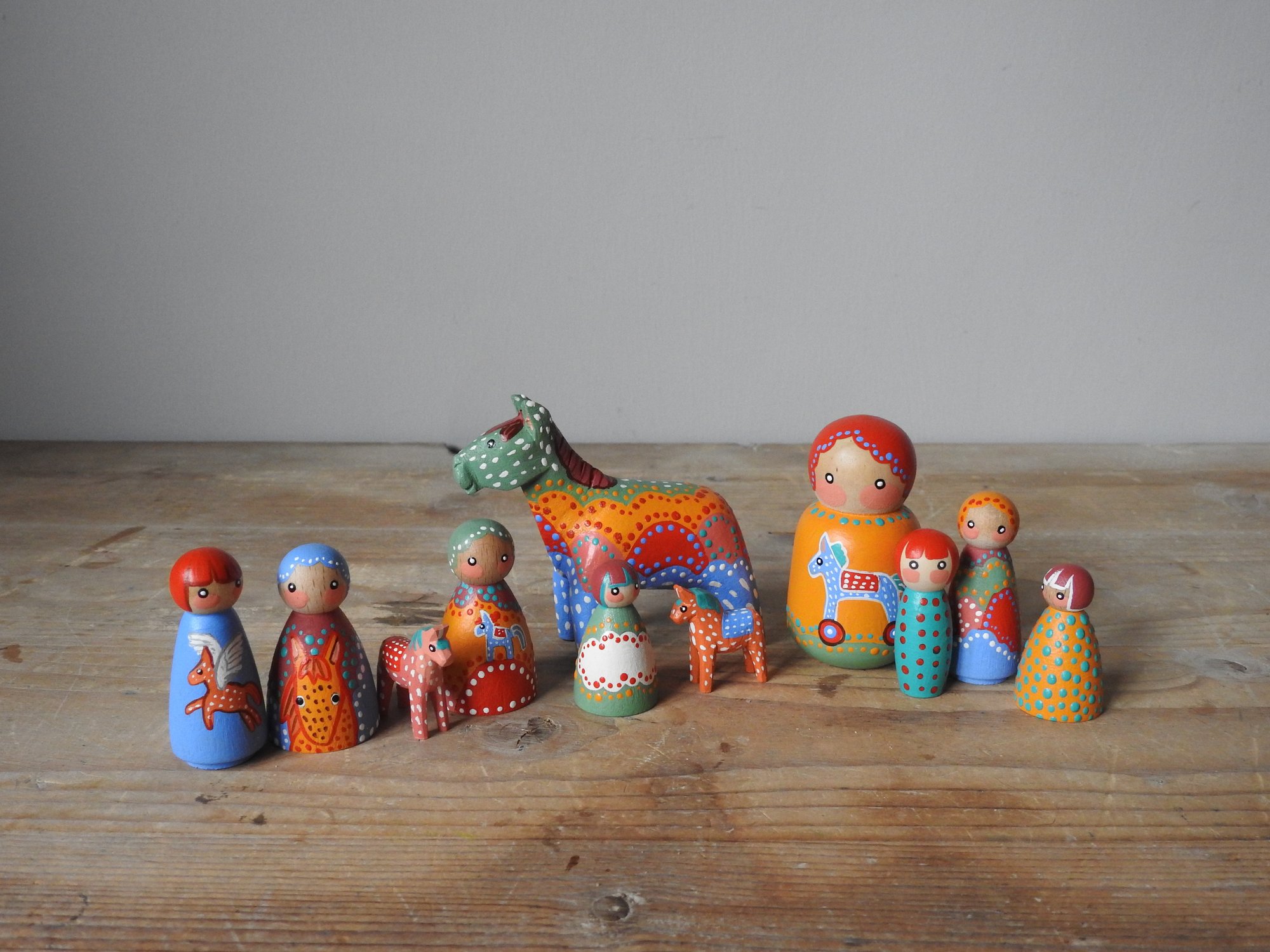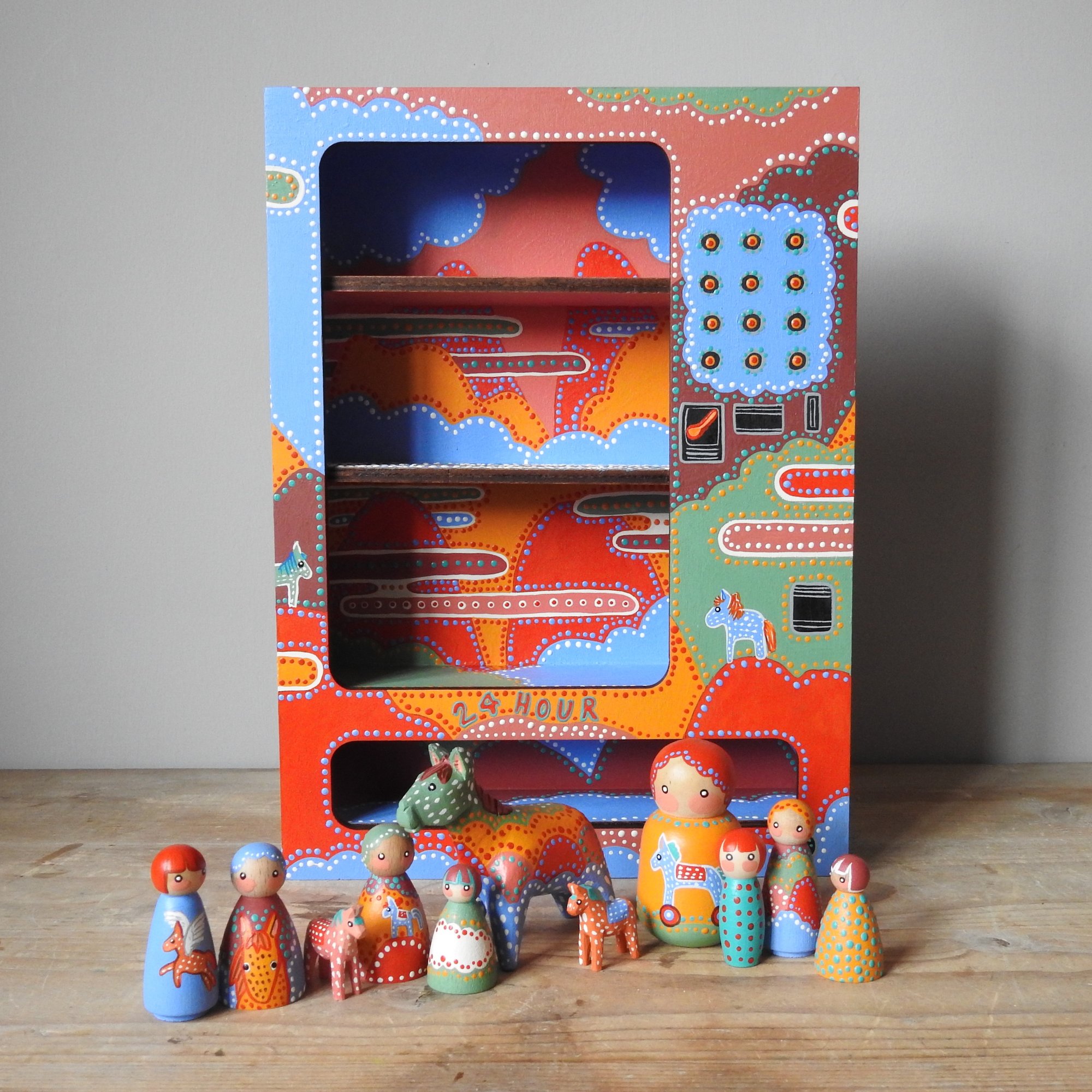 The machine comes fully 'stocked' with eleven suitably themed pieces - 8 micro wood girls and three horses.