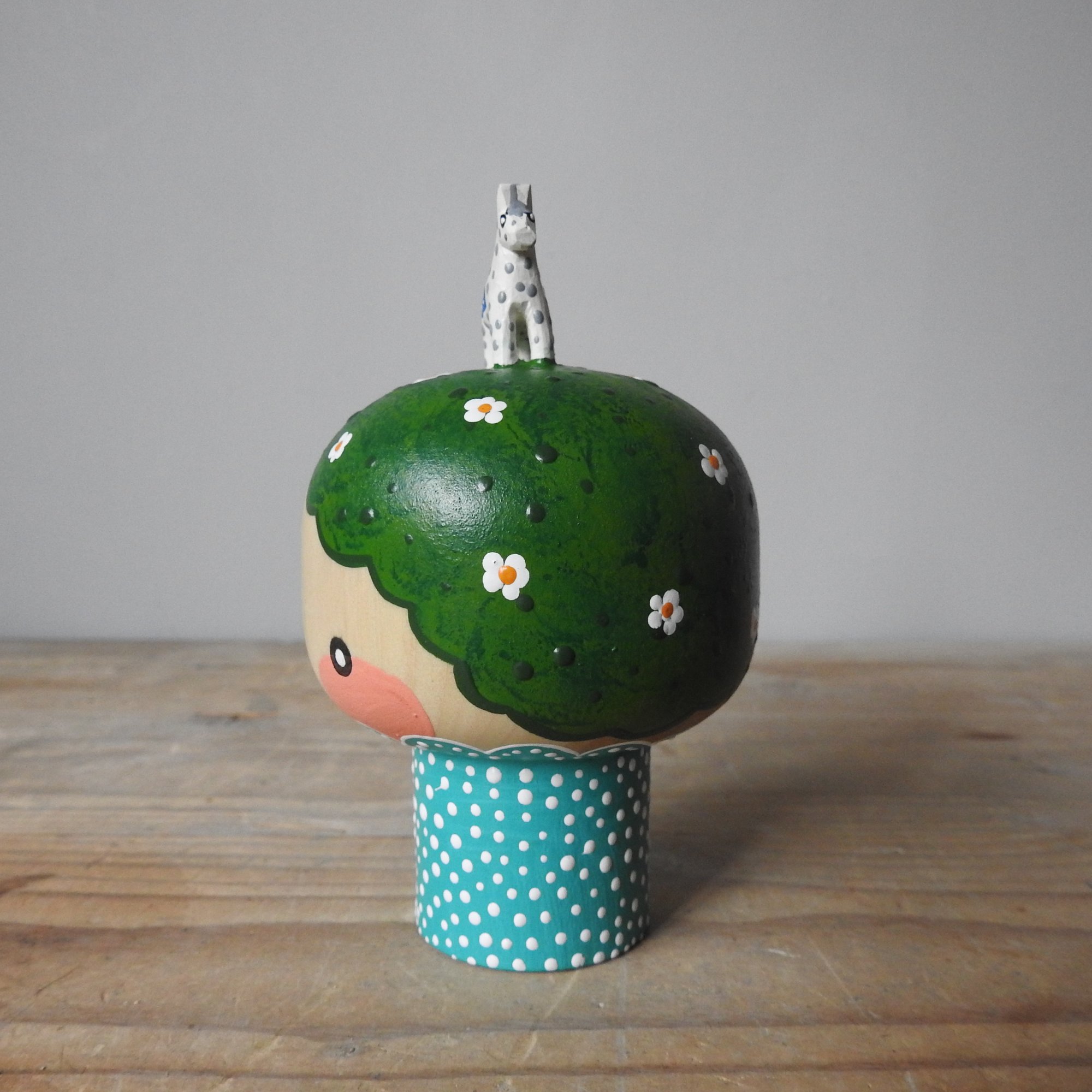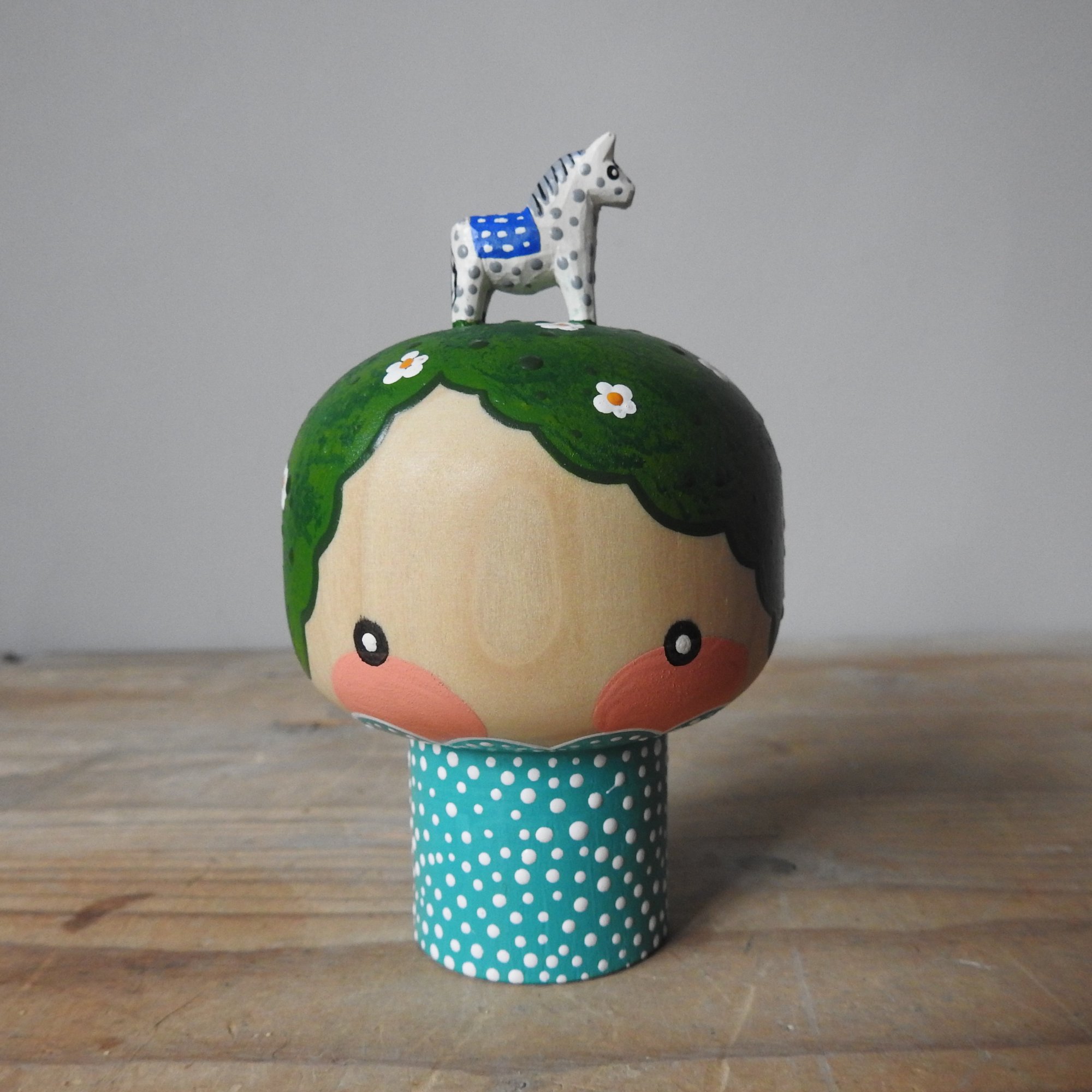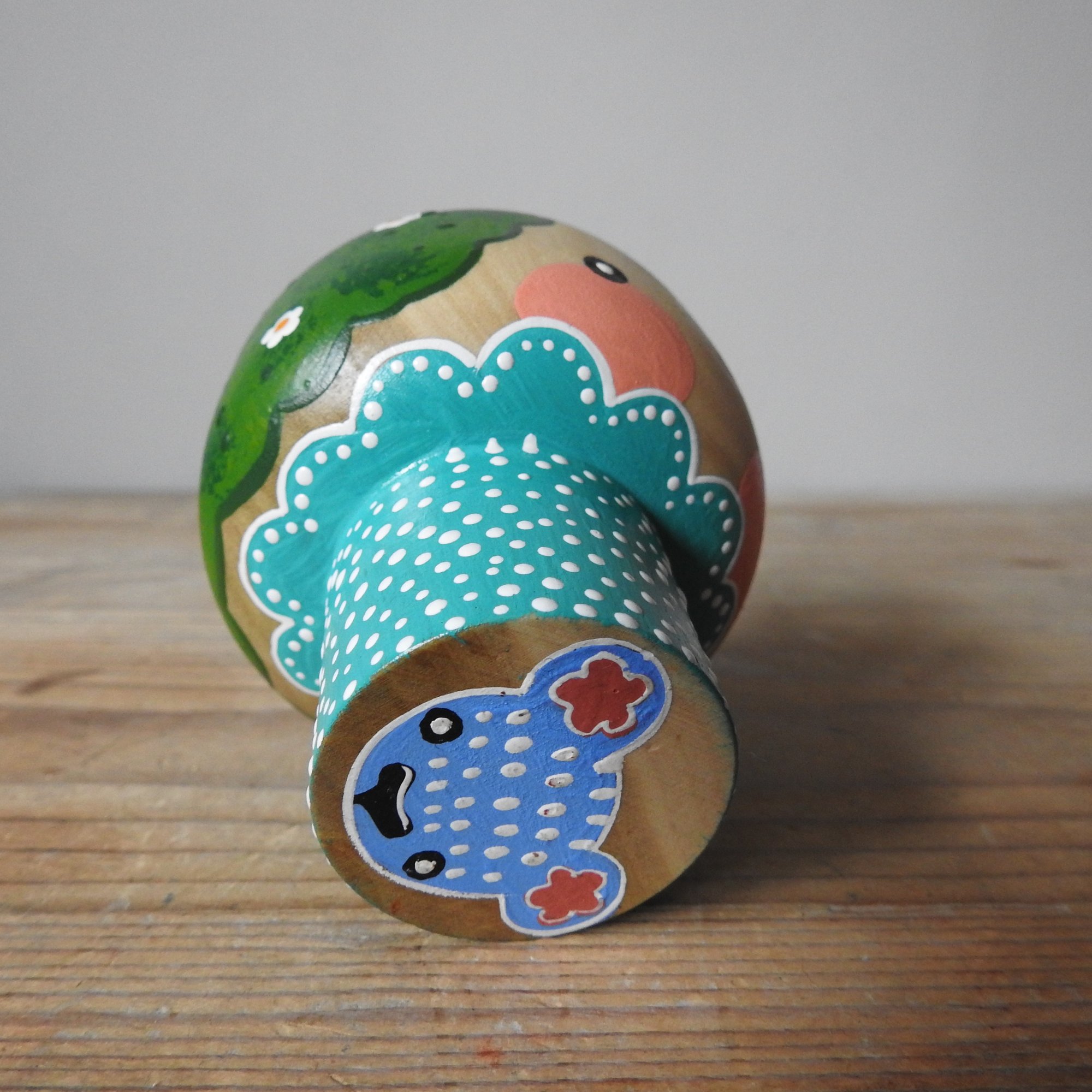 My pieces are painted in a naïve and simple style, with visible brush strokes and differing paint consistencies. It is important to note that these dolls are made from real wood which will have naturally occurring markings and grain, and sometimes there will be small amount of bleeding along the grain, or knots, which is to be expected when using untreated wood - please make sure you consult the pictures carefully before purchasing.