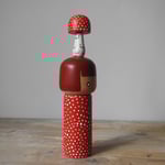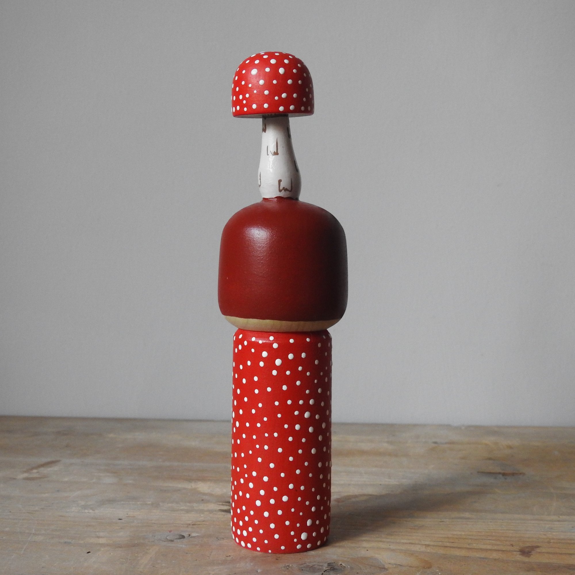 This regular sized wood girl is so pleased with the toadstool she found in the woods she is carrying it on her head!