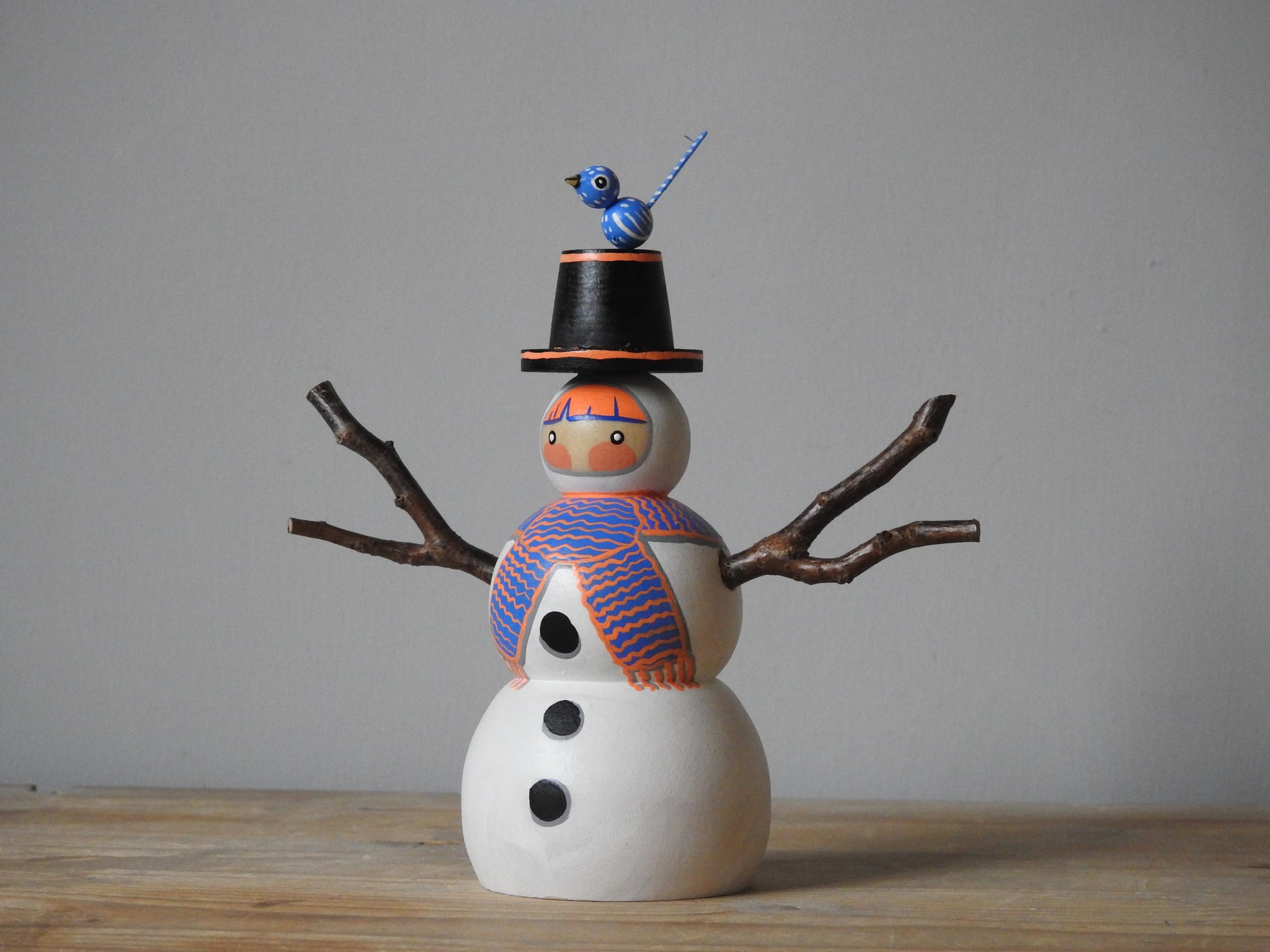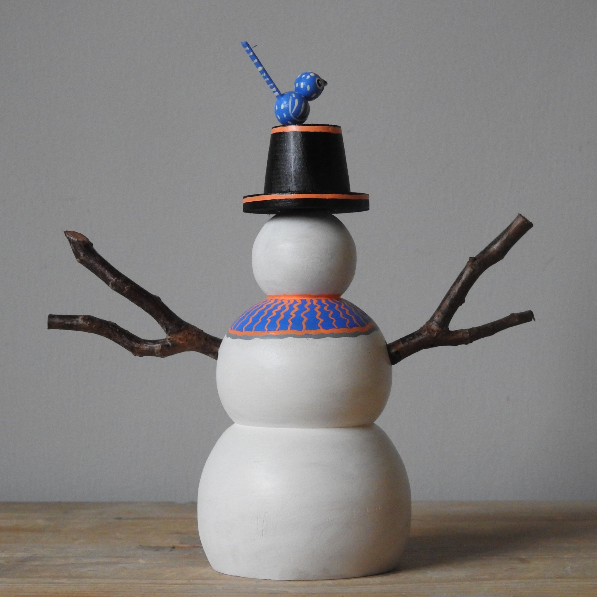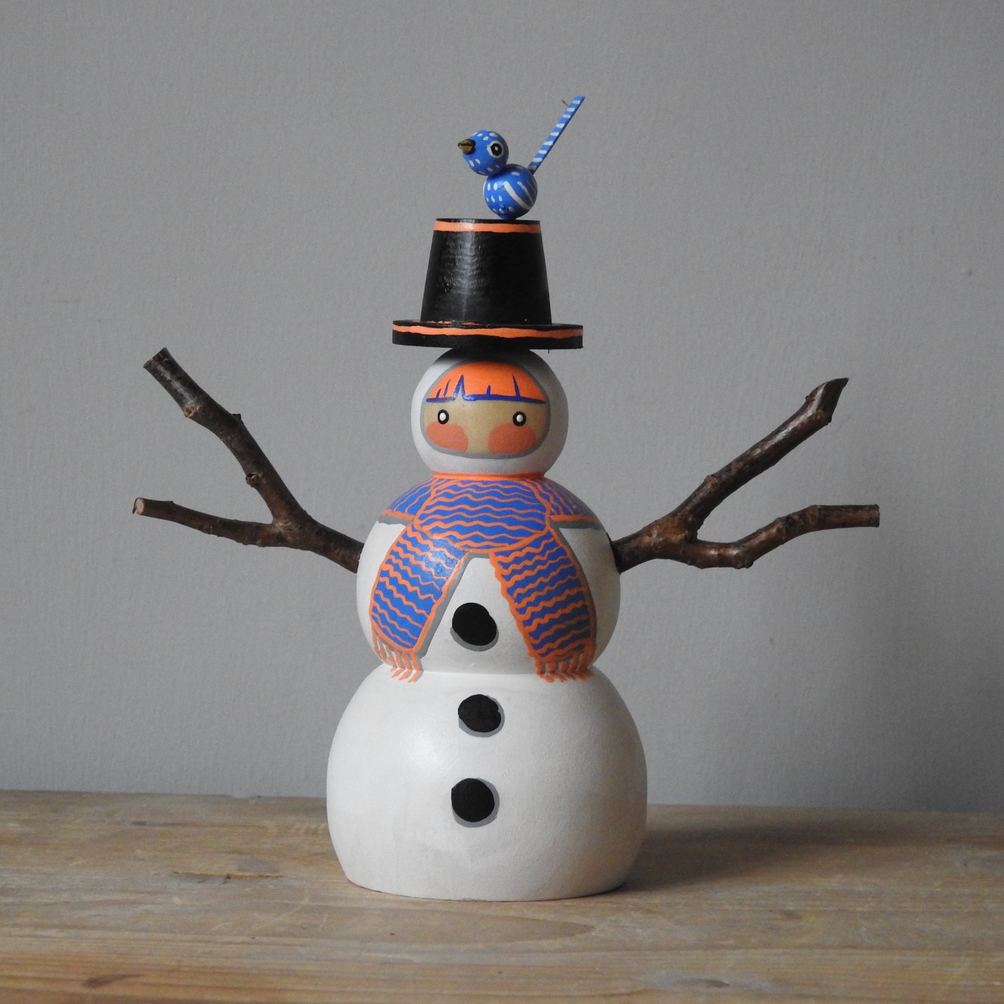My pieces are painted in a naïve and simple style, with visible brush strokes and differing paint consistencies. It is important to note that these dolls are made from real wood which will have naturally occurring markings and grain, and sometimes there will be small amount of bleeding along the grain, or knots, which is to be expected when using untreated wood - please make sure you consult the pictures carefully before purchasing.