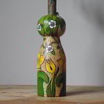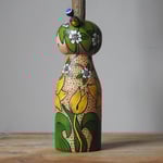 This girl was turned by a production turner to my design, and then altered and hand painted in the U.K. by me, a British artist. I love exploring the patterns and scenes encountered by me on my travels and in daily life.